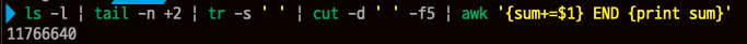 - -f2는 구분자를 기준으로 2번째 필드만을 뽑아낸다. 각 줄마다 파일의 링크 개수가 뽑혀나온다.